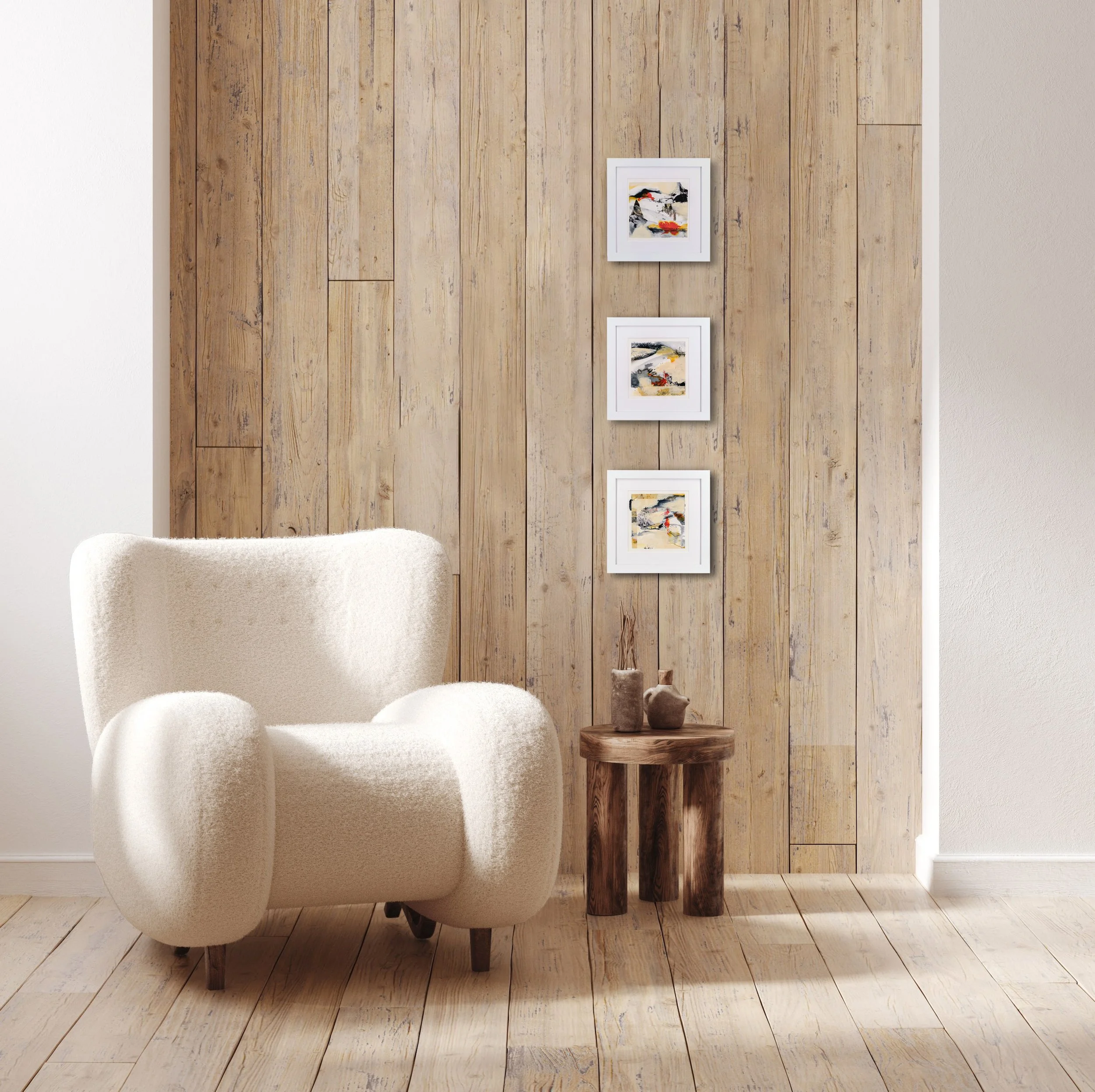 Each of these abstract paintings is a nod to nature and represents a free and intuitive exploration of a limited color palette, markmaking and collage. “Creek” stands alone, but would also pair well with “Cairn,” “Dune,” “Headland,” “Vista,” and “Hillock” in this series to make an elegant, larger statement as a collection.